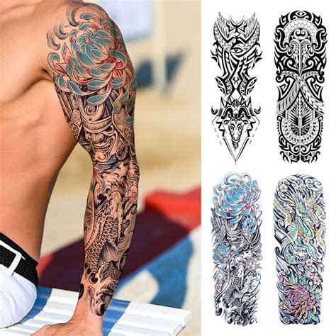 Love & hate flaming skull tattoo gun and flower temporary sleeve tattoos. Mermaid temporary tattoo set $ 10.00. The meaning of this design is feminism, beauty and freedom. Life black and white dragon skull lotus temporary sleeve tattoos. With standard shipping need it sooner?