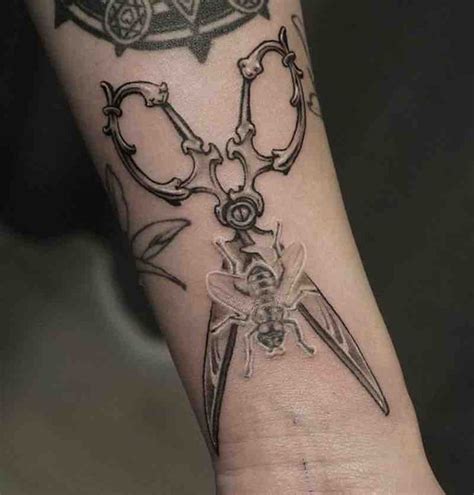 See more ideas about tattoos, hairstylist tattoos, hairdresser tattoos. The upper side of her right wrist contains another minimal design tattoo on it. Black tiny scissor tattoo on foot thumb. Grey scissor in red rose. The side of her right wrist contains a small scissor tattooed on it.