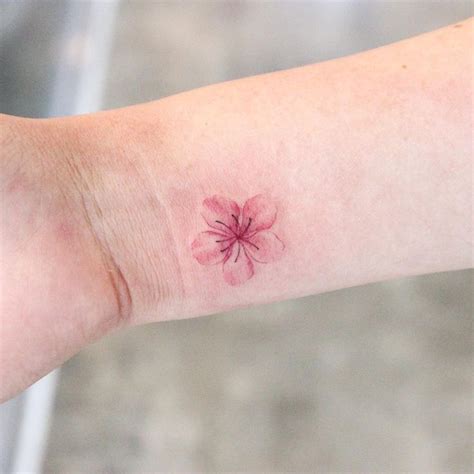 One of the most popular floral tattoo designs around the world is the cherry blossom tattoo. Personalize yours for unique items. The concept of impermanence and fleeting beauty. For example, you can make a small branch with flowers tattoo on the shoulder or chest. Small cherry blossom flower tattoo