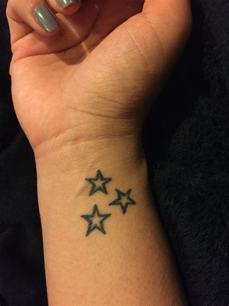 Another great placement for a tiny looking tattoo design is behind the ears and finger placement. There are spaces on both the outer and inner edges of the wrist where a small tattoo might fit. See more ideas about star tattoos, star tattoo on wrist, small star tattoos. Three grey ink stars tattoos on wrist. Traditionally the wrist star would.
