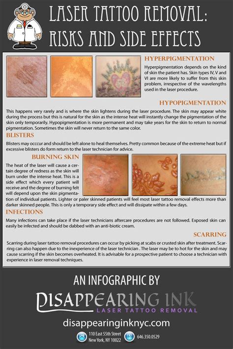 Risk of tattoo removal risk of tattoo removal. Hypopigmentation is much more commonly observed in darker skin tones. Eye injury injury to the eyes is a risk with any laser treatment, which is why everyone in the room during the procedure must wear protective goggles. The intent is to remove the layers of the skin that contain the ink particles,.