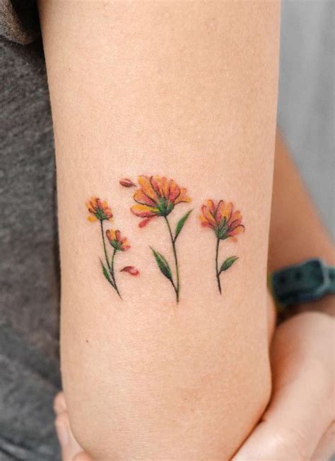 See more ideas about small flower tattoos, small flower tattoos for women, tattoos for women. Watercolor effect flower tattoo with bumblebee One of the perks of getting a small tattoo is that so many of the designs are cute. You can pick a tattoo that is youthful, playful, nostalgic, and fun. 8 years ago 8 years ago.